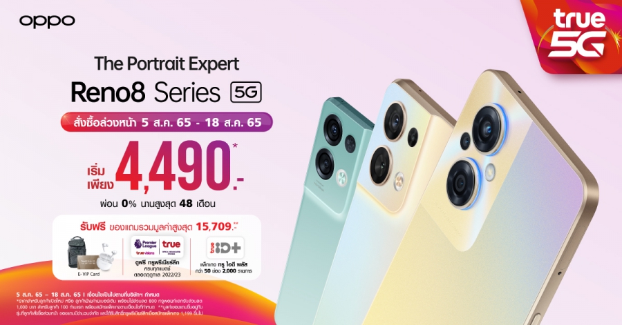ทรู 5G จับมือ ออปโป้ ชวนสัมผัสประสบการณ์ The Portrait Expert ไปกับ OPPO Reno8 Series 5G พร้อมจัดเต็มโปรสุดเอ็กซ์คลูซีฟ ราคาเริ่มต้นเพียง 4,490 บาท