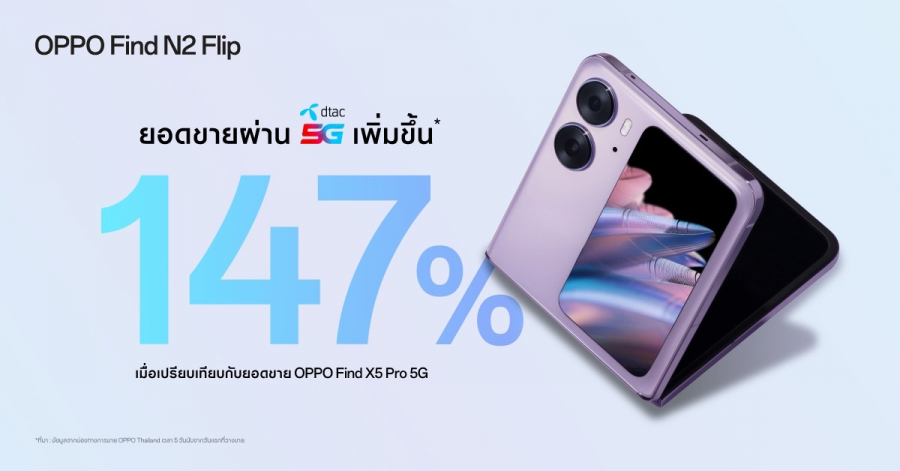 News Update OPPO Find N2 Flip เขย่าตลาดสมาร์ตโฟนจอพับ ส่งยอดขายจากดีแทคพุ่งขึ้น 147% พร้อมมอบประสบการณ์พับที่ดีกว่าในทุกด้าน 03/04/2023 OPPO Find N2 Flip เข…