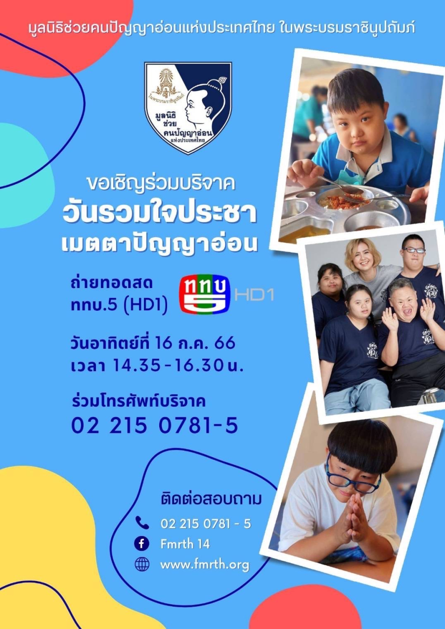 News Update ขอเชิญร่วมบริจาค วันรวมใจประชา เมตตาปัญญาอ่อน มูลนิธิช่วยคนปัญญาอ่อนแห่งประเทศไทย ในพระบรมราชินูปถัมภ์ ก.ค. 10, 2023 ขอเชิญร่วมบริจาค วัน…