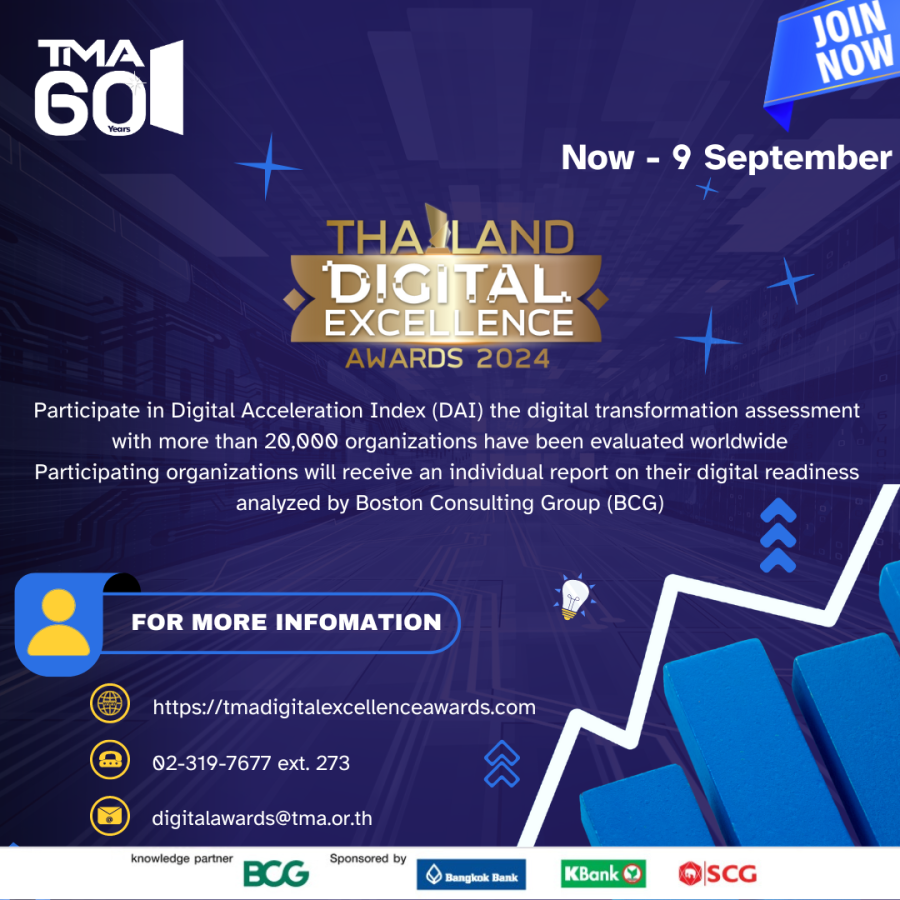 News Update TMA ขอเชิญชวนองค์กรเข้าร่วมทำ DAI – Digital Acceleration Index (DAI) ซึ่งเป็นเครื่องมือที่สำคัญจาก The Boston Consulting Group (BCG) ในการประเมินความสามารถในการใช้ดิจิทัลขององค์กร 05/09/2024 TMA ขอเชิญชวนองค์กรเ…