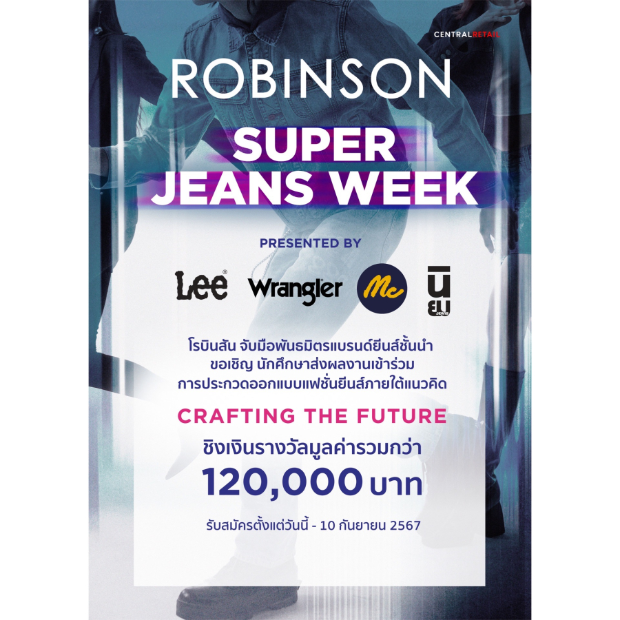 News Update ห้างโรบินสัน ในเครือเซ็นทรัล รีเทล ชวนน้อง ๆ นักศึกษาทั่วประเทศ ร่วมส่งผลงานการออกแบบแฟชั่นยีนส์แห่งอนาคตในการประกวด “Robinson Jeans Week แฟชั่นยีนส์แห่งอนาคต” ในหัวข้อ #CRAFTINGTHEFUTURE ชิงทุนการศึกษาและของรางวัลรวมกว่า 120,000 บาท 03/09/2024 ห้างโรบินสัน ในเครือ…