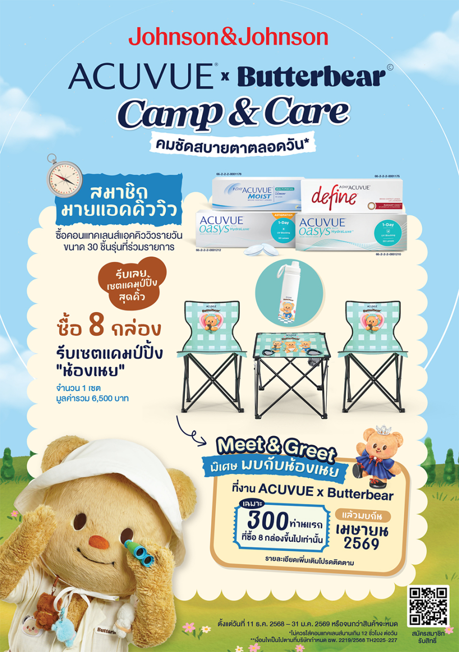 News Update ACUVUE (แอคคิววิว) จัดเต็มดีลใหญ่ส่งท้ายปี ACUVUE x Butterbear Camp & Care ชวนดูแลสายตา พร้อมแจกของพรีเมี่ยมสุดคิ้วท์ และลุ้นร่วมกิจกรรมพิเศษกับน้องเนย 24/12/2025 กรุงเทพฯ 23 ธันวาคม …