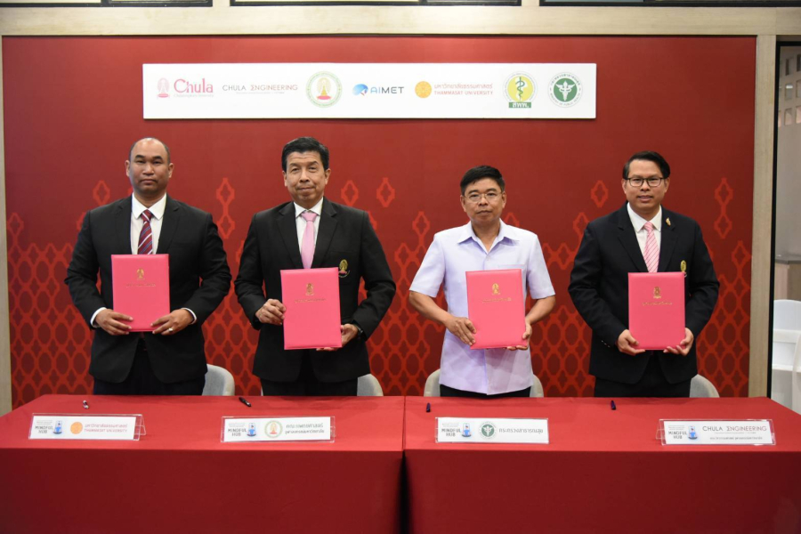 กรุงเทพฯ : วันศุกร์ที่ 13 ธันวาคม 2567 ณ ห้องทรูแลป (True LAB) ตึก 3 คณะวิศวกรรมศาสตร์ จุฬาลงกรณ์มหาวิทยาลัย คณะวิศวกรรมศาสตร์ จุฬาลงกรณ์มหาวิทยาลัย, คณะแพทยศาสตร์ จุฬาลงกรณ์มหาวิทยาลัย, มหาวิทยาลัยธรรมศาสตร์ และกระทรวงสาธารณสุข จัดงานแถลงข่าวลงนามบันทึกข้อตกลงความร่วมมือ (MOU) โดยมีวัตถุประสงค์เพื่อต้องการยกระดับการดูแลสุขภาพจิตผ่านการนำนวัตกรรมดิจิทัลปัญญาประดิษฐ์ Mindful Hub มาใช้เป็นแนวทางในการดูแลนิสิตนักศึกษาแพทย์