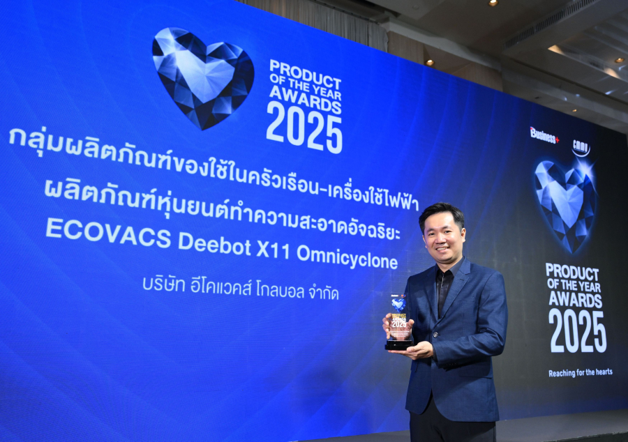 กรุงเทพฯ, 25 กันยายน 2568 – ‘ECOVACS Deebot X11 Omnicyclone’ ก้าวสู่ความสำเร็จครั้งสำคัญด้วยการคว้ารางวัล BUSINESS+ PRODUCT OF THE YEAR AWARDS 2025 ประเภทของใช้ในครัวเรือน–เครื่องใช้ไฟฟ้า ตอกย้ำภาพลักษณ์ผู้นำระดับโลกด้านนวัตกรรมหุ่นยนต์ทำความสะอาดอัจฉริยะ โดยพิธีมอบรางวัลจัดขึ้นอย่างยิ่งใหญ่ที่โรงแรมสวิสโฮเต็ล กรุงเทพฯ รัชดา ภายใต้การจัดของนิตยสาร BUSINESS+ ร่วมกับวิทยาลัยการจัดการ มหาวิทยาลัยมหิดล และได้รับเกียรติจาก ฯพณฯ นุรักษ์ มาประณีต องคมนตรี เป็นประธานในพิธี