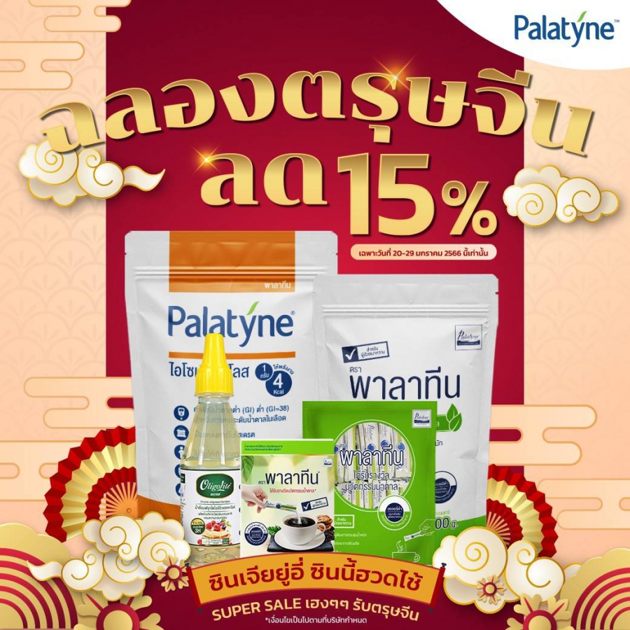 ซินเจียยุอี่ ซินนี้ฮวดไช้ บริษัท อีทเวลล์ จำกัดผู้ผลิต พาลาทีนสวีทเทนเนอร์ ซึ่งเป็นสารให้ความหวานที่มีส่วนประกอบหลักเป็นไอโซมอลทูโลส ซึ่งเป็นคาร์โบไฮเดรต GI ต่ำ ไม่ทำให้น้ำตาลในเลือดสูง ผู้ป่วยเบาหวาน โรคตับไตจึงสามารถทานได้อย่างปลอดภัย อีกทั้งพาลาทีนยังช่วยในเรื่องการควบคุมน้ำหนัก ไม่ทำให้ฟันผุ และไม่มีสารตกค้างในร่างกาย สามารถใช้พาลาทีนแทนน้ำตาลทรายได้ จัดโปรโมชั่นลดราคา 15% ฉลองตรุษจีน ตั้งแต่วันที่20-29 มกราคม 2566 นี้