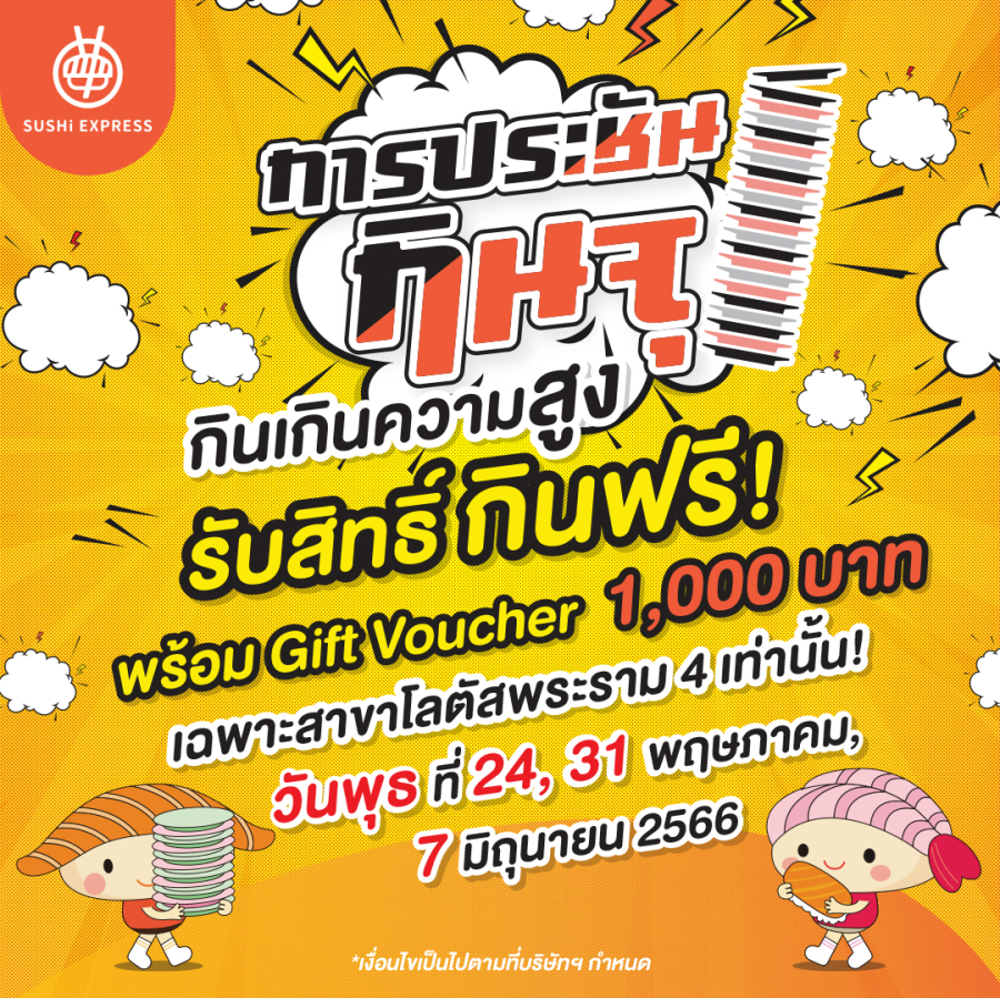 – กินเกินความสูงของตัวเอง รับสิทธิ์ทานฟรี และ Gift Voucher มูลค่า 1,000 บาท