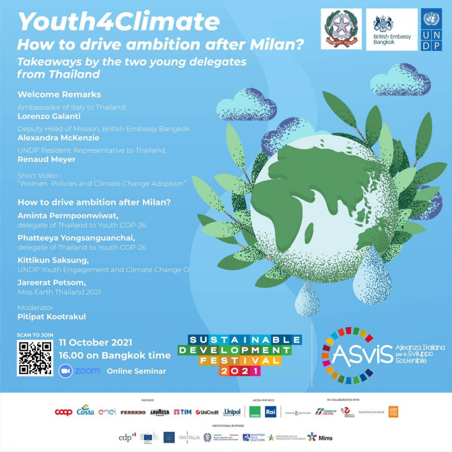 News Update “สถานทูตอิตาลี” จับมือ “UNDP” ยกเทศกาลความยั่งยืนจากอิตาลี สู่สัมมนาออนไลน์ Youth4Climate ชวนคนรุ่นใหม่ชาวไทย ร่วมตระหนักโลกร้อน 11 ตุลาคมนี้ 09/10/2021 “สถานทูตอิตาลี” จับม…